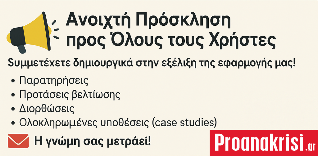 Απευθύνουμε ανοικτή πρόσκληση σε κάθε χρήστη της εφαρμογής να συμβάλει δημιουργικά: